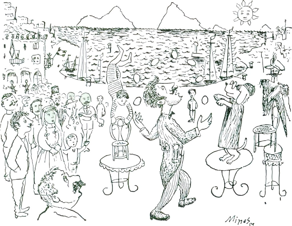 Destiné au décryptage d’une exposition, il est élaboré à partir d’extraits des poètes O. Elytis (prix Nobel), G. Seferis, et T. Patrikios, du compositeur M. Hatjidakis, des parolières E. Papagianopoulou et L. Nikolakopoulou et du satirique M. Bostanjoglou