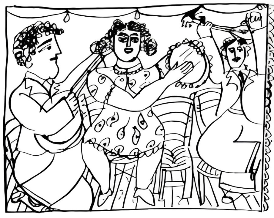 SCÈNE: avec deux musiciens, une actrice et une danseuse *