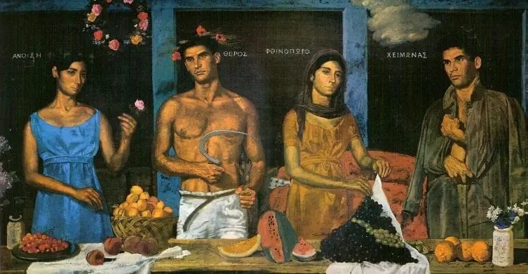 peintre grec emblématique, étudia à l’École des beaux-arts d’Athènes de 1929 à 1935 dans l’atelier de Fótis Kóntoglou. Avec celui-ci, il s’initia à la peinture byzantine. Il étudia aussi l’architecture et les costumes populaires. Il devint ainsi un des artisans du retour artistique à la Grécité de la génération des artistes des années 1930. En 1935 et 1936, il voyagea à Constantinople, à Paris et en Italie. Il s’initia alors à l’art de la Renaissance et à l’Impressionnisme. Il s’installe à Paris en 1967 avant de retourner en Grèce à la fin des années 1970 Wikipedia